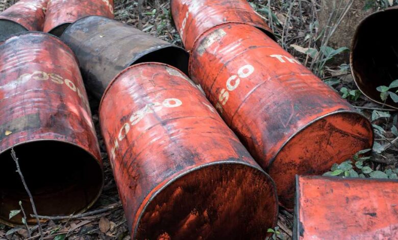براميل نفط فارغة قرب مصفاة غير قانونية في نيجيريا- أرشيفية