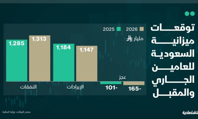 فيما تم تقدير العجز عند 165 مليار ريال تمثل (-3.3% من الناتج المحلي) في ميزانية 2026 مقابل 101 مليار ريال، تعادل (-2.3% من الناتج) ميزانية 2025.