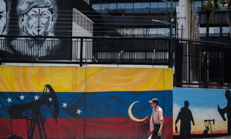 لوحة جدارية على الحائط خارج مقر شركة بتروليوس دي فنزويلا