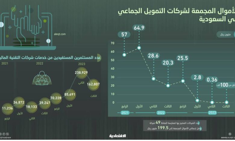 بلغ عدد الشركات المصرح لها بمزاولة نشاط تمويل الملكية الجماعية 41 شركة في عام وتسعة أشهر، أي منذ الربع الأول من 2022 حتى الربع الثالث من العام الجاري، الأمر الذي جاء بالتزامن مع استراتيجية التقنية المالية في زيادة عدد الشركات في القطاع لبلوغ الهدف المنشود بحلول 2030.