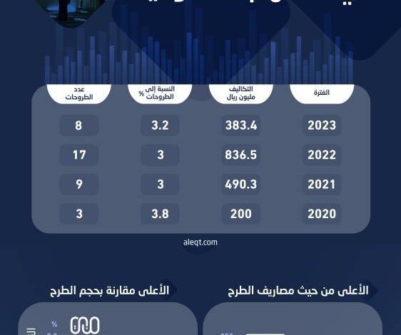 في الجهة المقابلة، سجلت شركة “المرابحة المرنة” أعلى مصاريف مقارنة بحجم الطرح، بعدما مثلت المصاريف 8.8 في المائة وبنحو 21.43 مليون ريال مقارنة بحجم الطرح البالغ 312.9 مليون ريال.