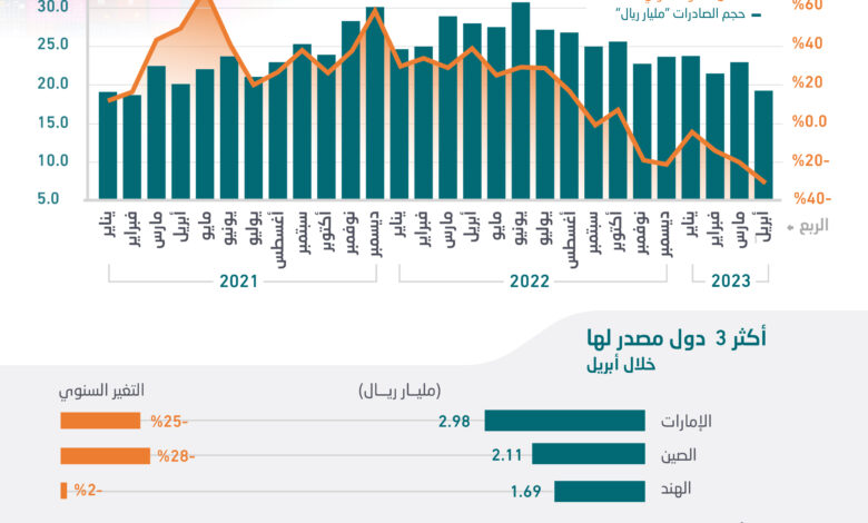 19.2 مليار ريال الصادرات السعودية غير النفطية خلال أبريل .. 18.7 % من الإجمالي