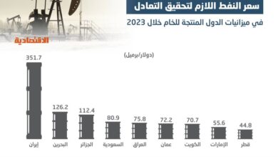 يراوح متوسط سعر النفط الذي يحقق التعادل في ميزانيات الدول المنتجة للخام عالميا بين 44.8 دولار للبرميل و351.7 دولار خلال…