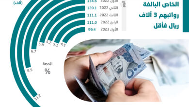 62 % تراجع السعوديين البالغة رواتبهم 3 آلاف ريال فأقل .. 159 ألفا انضموا لشرائح أعلى